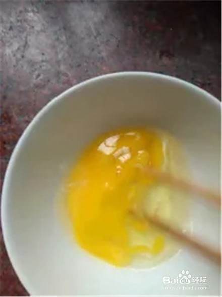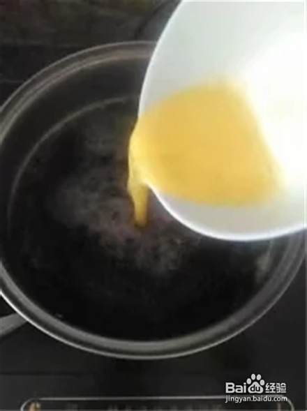 拿出准备好的鸡蛋,然后在碗上敲击一下,用筷子拌匀,然后将拌匀的蛋花倒入汤中,就会形成蛋花。