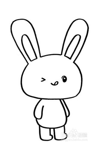 继续来画出小兔子的身体,身体是站立的,画出双手和双脚,简单的小兔子就画出来了。