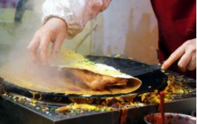 杂粮煎饼是一种非常有名的小吃,很多上班族和学生党的早餐,主要是它不仅香脆,还很有营养,它的原料来自五谷杂粮,可以促进消化,还能补充各种维生素和蛋白质。