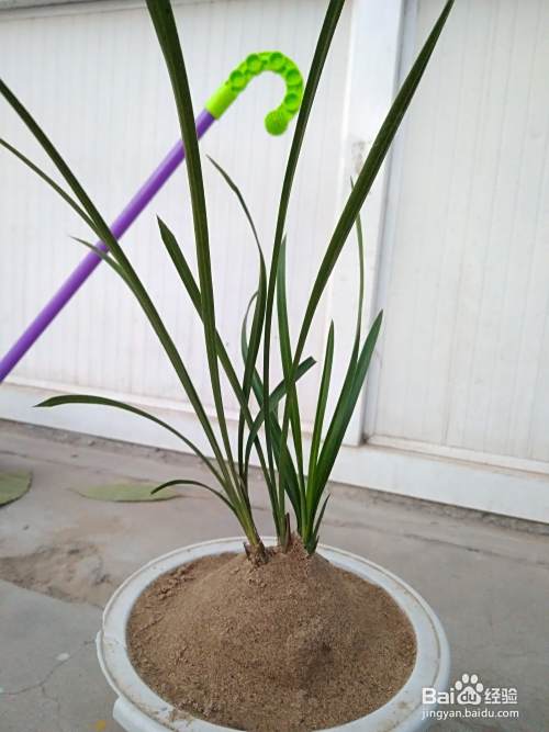 兰花使用的花盆,底部先放一些树叶或苔藓之类,防止沙子流失也可以起到保湿的作用。