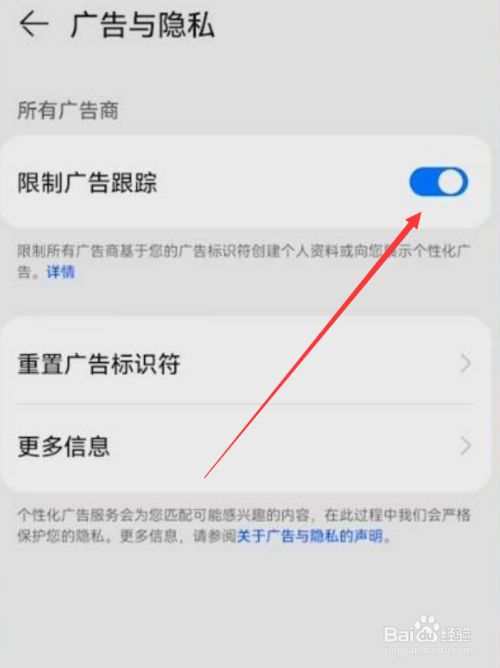 第三步,我们在新界面中,开启限制广告跟踪,即可解决广告自动弹出的问题。