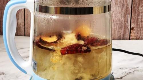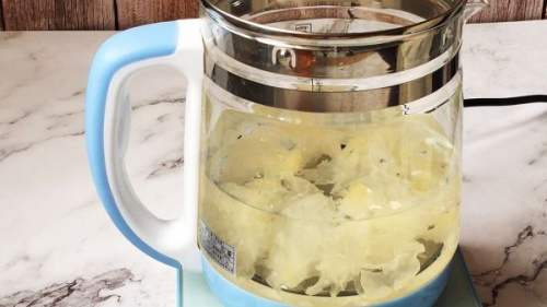 6先将银耳放入养生壶按甜品键,炖煮四十五分钟。