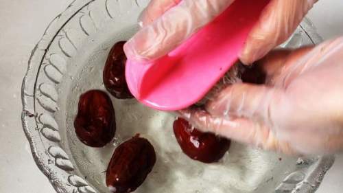 4红枣用你小刷子刷洗干净红枣缝隙里的杂物,再次冲洗干净。