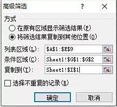 可以点击“数据”选项卡“排序和筛选”功能组中的“高级”,然后按照如下图所示的方式进行设置。