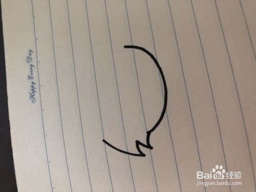 接着画出灰太狼的一个帽子中间的一个痕迹采用的线条是弯弯曲曲的,以及他的非常粗的眉毛。