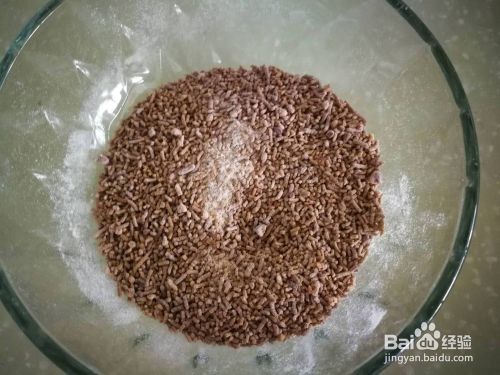 准备红糖,我用的是超市买的大袋装里的2小袋,约3勺的量,在红糖里加入1勺面粉,防止红糖受热溢出。