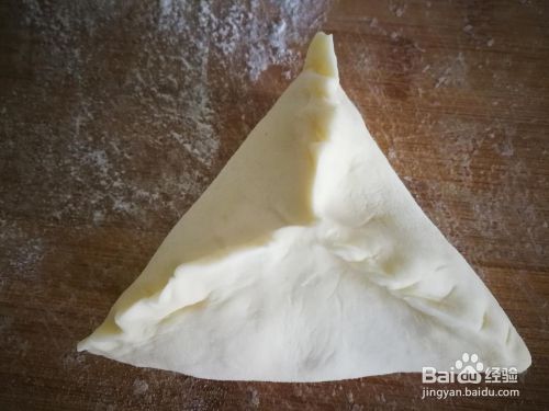 收起捏成三角形,把边缘捏紧,捏上褶子。