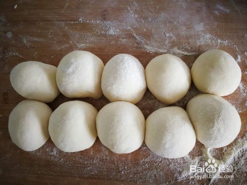约1个多小时,面团发酵好,分成等量的10份,盖保鲜膜醒5分钟。