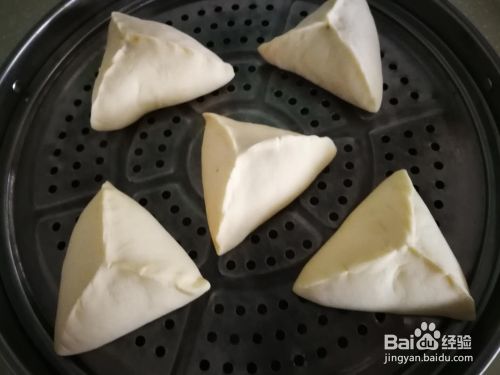 醒20分钟,锅中添凉水开蒸,水开,再蒸15分钟,关火。闷2分钟,开锅,糖三角就好了。。