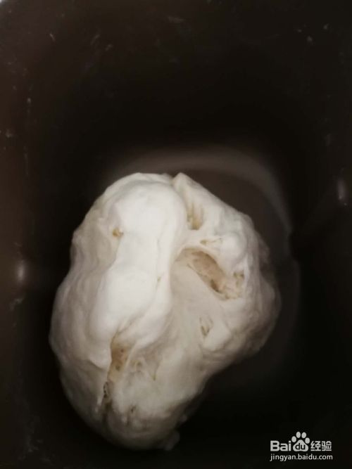 选自定义,揉面20分钟。因面粉量多,面团比做面包的硬很多,所以,人不出力了,面包桶累的不轻,瞧,面团只能揉成这样了。收圆,就在面包桶里盖保鲜膜发酵。