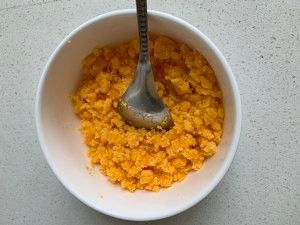 蛋黄捣碎。