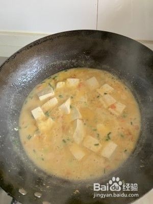 加油炒蛋黄,倒入豆腐。
