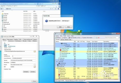 不知什么时候,电脑一开机就弹出“今日资讯”和“百度推荐”这两个窗口,分别占据屏幕中心和右下角,所发内容淫秽不堪!扰乱视野,坏人心情,查遍网上帖子和求救都不得其终!每次开机都弹出来,关掉后,过1个小时又弹出来,以为是百度的输入法,搜狗输入法,快播等捣鬼,全部卸载后,问题依然,后偶然在网页上看到用process hacker软件,问题解决,整个电脑界面顿时清净,再也未见令人讨厌的弹窗,今天总结一下方法,供受此祸害的朋友参考!