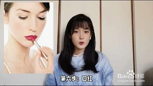 第六步口红。淡妆口红选择不要太浓重,能达到提气色的效果即可。苹果红,山楂红,橘调的口红都是不错的选择。