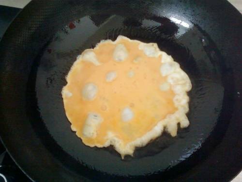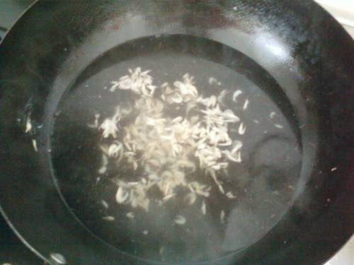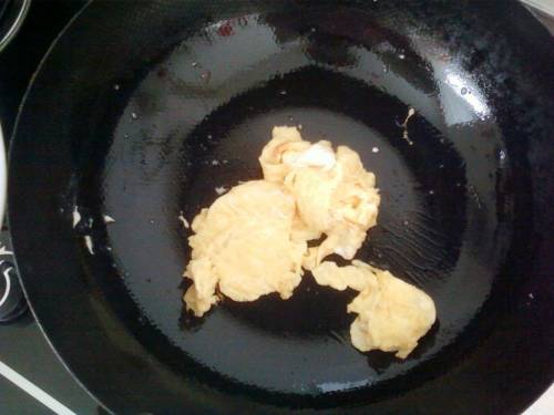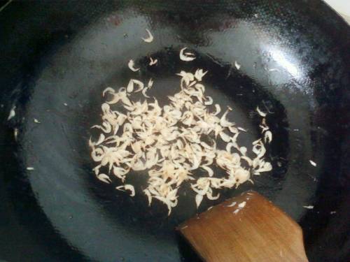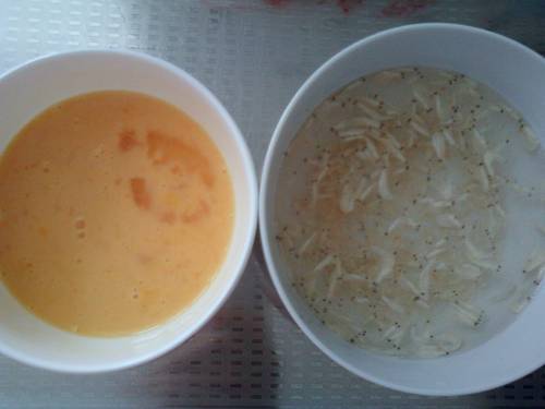 2、将鸡蛋打散均匀,虾皮洗一下。