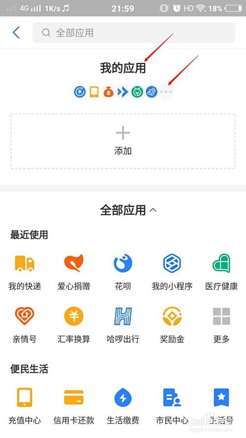 第五步,完成我的应用选择后,回到首页面,可以看到借呗不再在首页展示,如图所示: