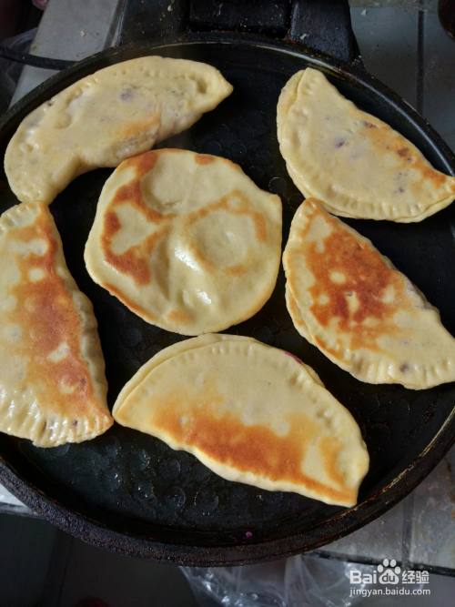 平底锅刷油,将做好的饼胚均匀摆入锅中。