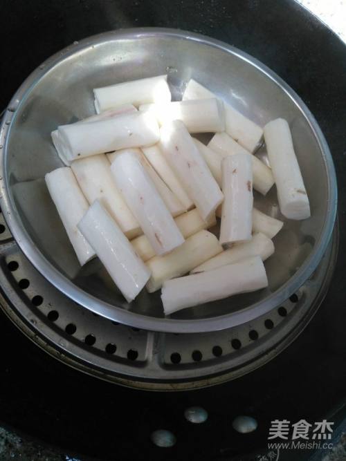 锅内烧水放入山药蒸熟取出备用