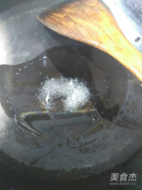 锅内热油放入白砂糖熬成糖浆