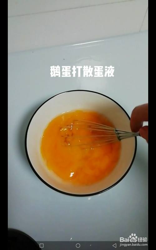 鹅蛋打入碗中打散蛋液,加少许盐搅拌均匀