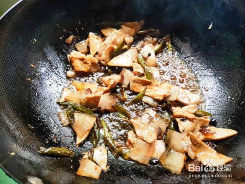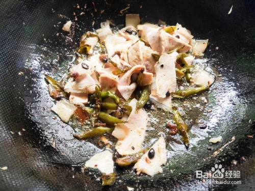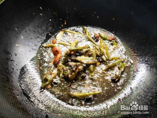 先放入少许姜片爆香,再将剩菜的辣椒放入适量在锅中。