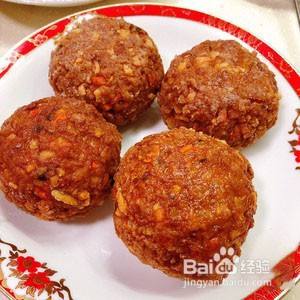 制作好的肉馅用手捏上劲,然后双手搓成肉丸子,搓成鸡蛋大小左右。