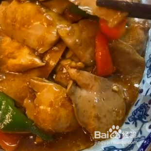 锅中放油,放青红椒,腰片,料汁,翻炒均匀即可出锅