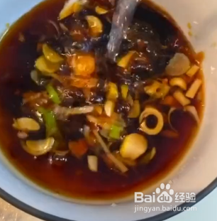 锅中烧油,放腰片,炒散备用,碗中放葱姜蒜、盐、味精、白糖、酱油、蚝油、水、生粉,拌匀