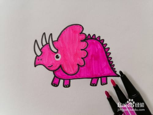 最后涂上好看的颜色,简单易学的三角龙就画好啦