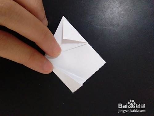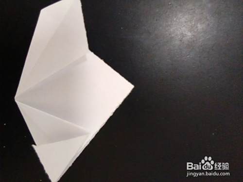 再把折上去的角向外折,另一边同样;然后打开压下去,另一边同样;最后把尖角反折,另一边同样。(如图)