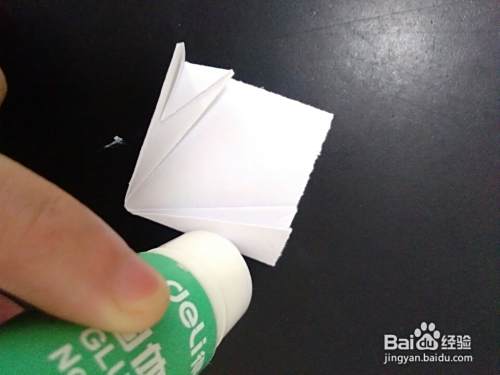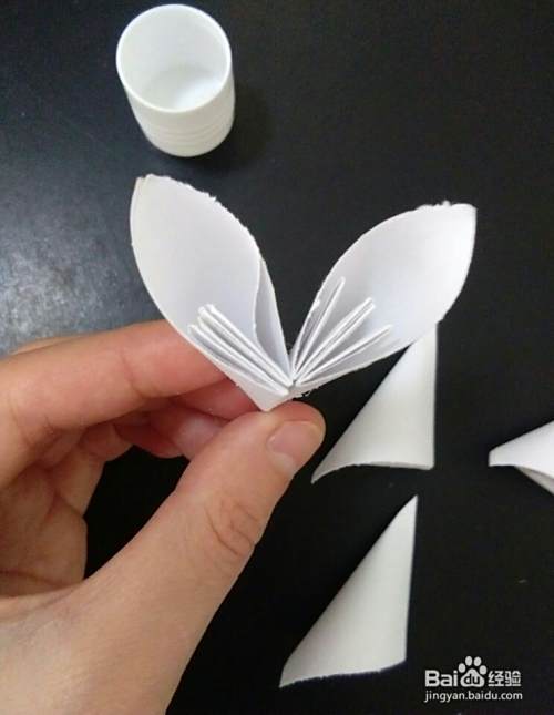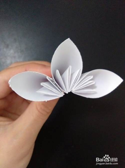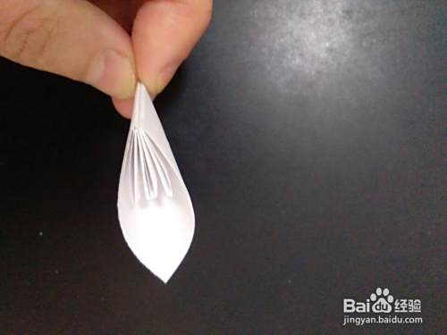 反折好后用胶水固定,一个花瓣就完成了。(如图)重复上述步骤折好另外的4个花瓣。