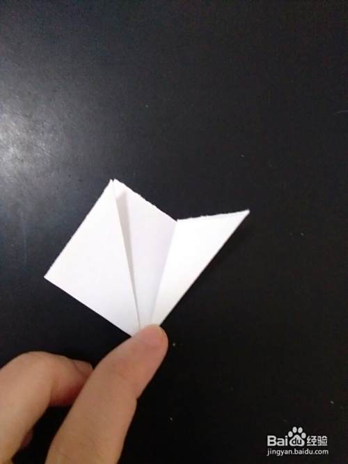 把下面的两个角向顶角折,另一边同样,形成图的样子。(如图)