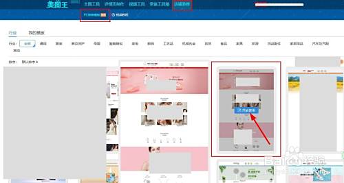 首先,打开软件选择店铺装修、pc装修模板,进入界面后选择一个合适的模板来制作。