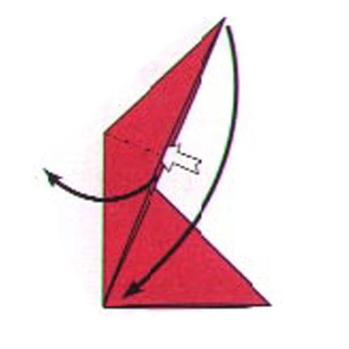 把右边的小三角形向里折叠,叠出尾巴。