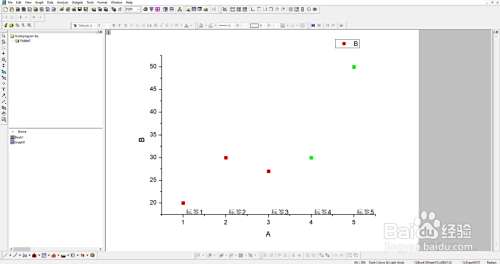 打开Origin软件,在数据表格里面添加C列,并在每个数据点后面输入一个数字,代表颜色的序列。2代表第二个颜色红色,3代表第三个颜色绿色。