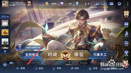 打开王者荣耀后,点击左下角的“英雄”选项卡