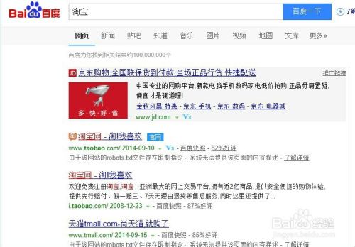 在百度首页搜索关键词淘宝。