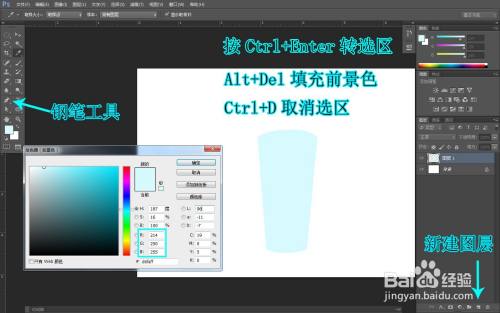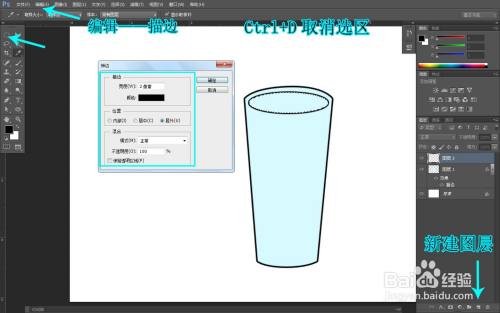 钢笔工具绘制路径,新建图层,填充颜色,添加图层样式的描边