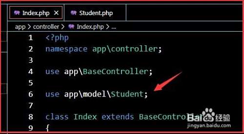实现依赖注入,将学生类(Student)中的对象($stu)传递到Index类的test方法中
