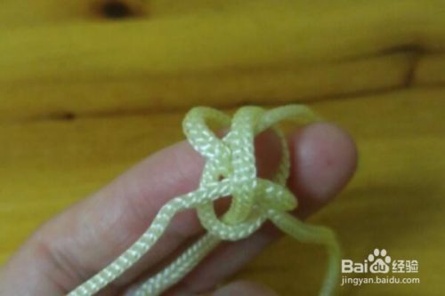 然后将其中的一根绳子的末端压在另一根绳子的上,这样就形成了第一个线圈。然后再将下一根绳子压在第3根绳子的上方,就是这4根绳子都要互相压住,见下图展示。