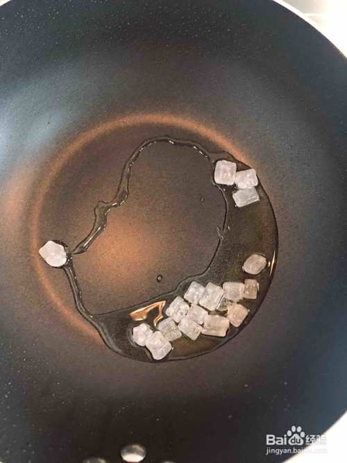 锅中放油,放入冰糖小火融化。