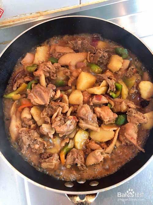 一盘美味的新疆大盘鸡上桌了!