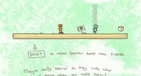 盒子先生是一个非常脆弱的人,但是他拥有很多人不可能拥有的一项技能:分身术。所以说,虽然在这个世界上探险者只有盒子先生一个人,但是他拥有了分身,那么,这个小人不寂寞。对于他来说,这样脆弱的身体只能依靠自己或者分身的死亡才能顺利的达到目的地。所以,请你用你的智慧以及一点点儿的技巧,帮助盒子先生这个小人过关吧!