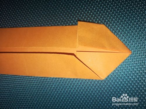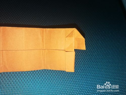 翻面,将两端的角分别对齐本端内部的两条折痕折叠,不需要打开。