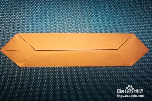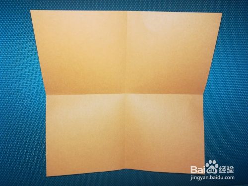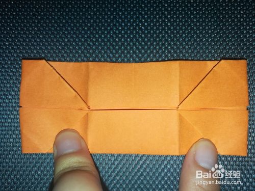 将一端的角先沿纸层的边向内折,打开后角尖再折向对面纸层底边中点,另一端同样操作,得出四条折痕。