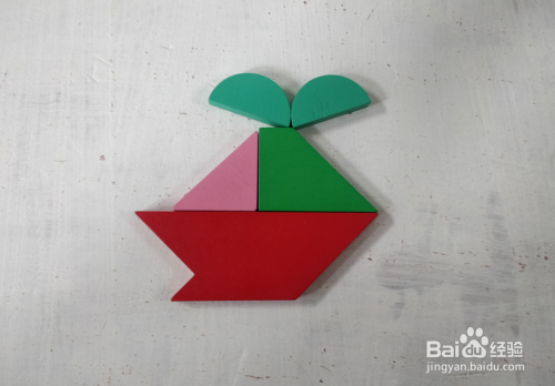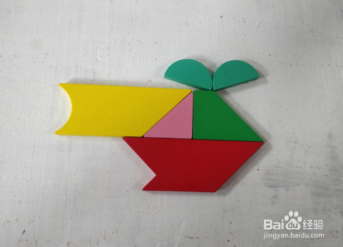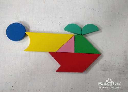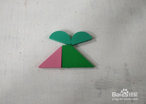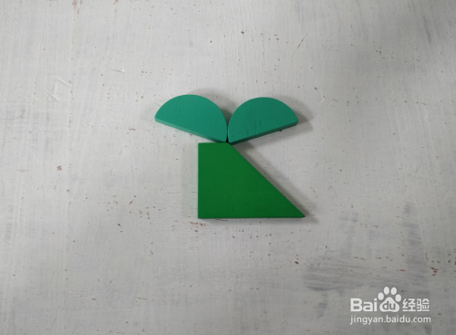 接着在半圆形的下面,放上梯形挨着,右上挨着,如图。