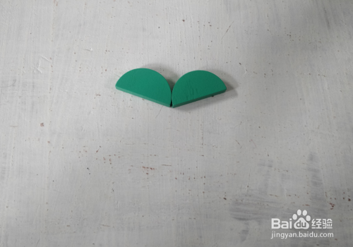 首先放上两个左右挨着的半圆形,弧形在内侧,下端一齐,如图。