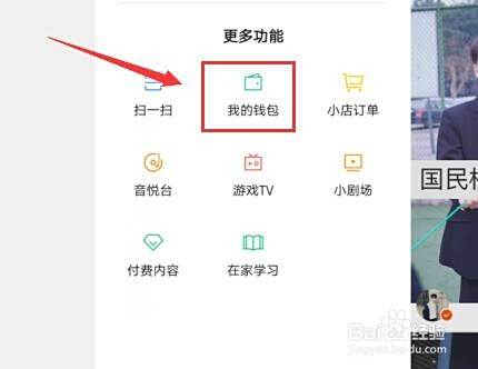 点击“更多”后,在功能的选项中选择“我的钱包”,如下图: