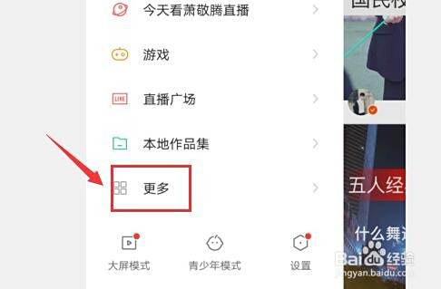 首先是打开快手,登录账号,点击上方的“三”横线,在弹出的页面中点击“更多”。