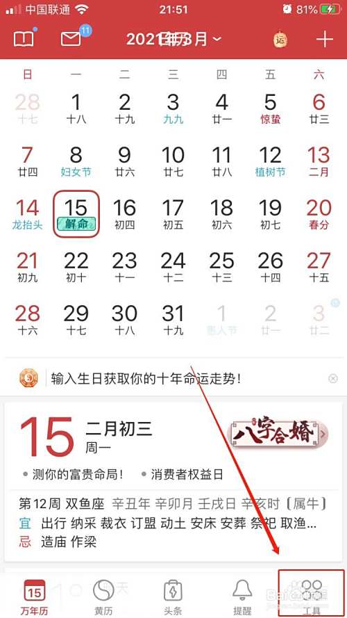 1.打开万年历